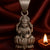 This exquisite 925 sterling silver pendant features Goddess Lakshmi seated gracefully on a lotus, symbolizing prosperity, wealth, and blessings. The oxidized matte finish enhances its temple-art detailing, making it a sacred keepsake and a devotional accessory.