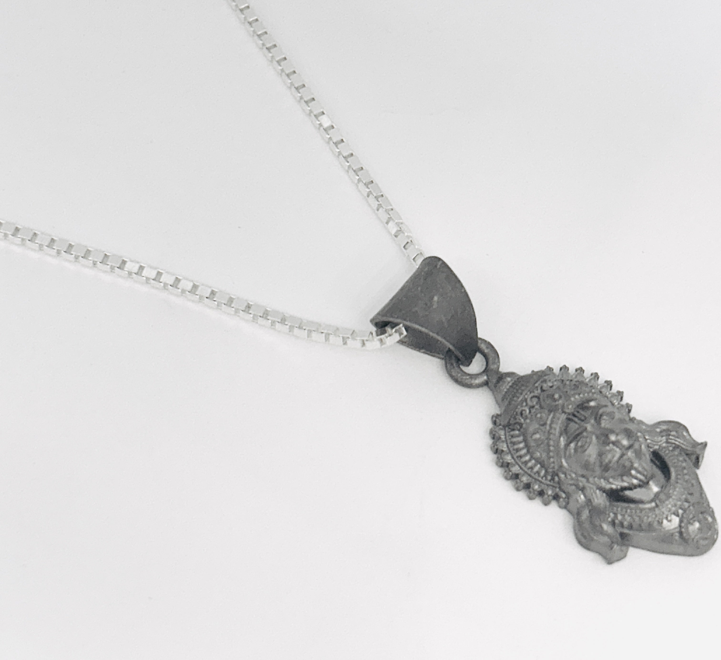Invoke strength and devotion with this Hanumanji pendant, beautifully carved in 925 sterling silver and paired with a durable box chain. The divine detailing represents courage, protection, and faith, making it a timeless piece for men who carry spirituality close to their hearts.