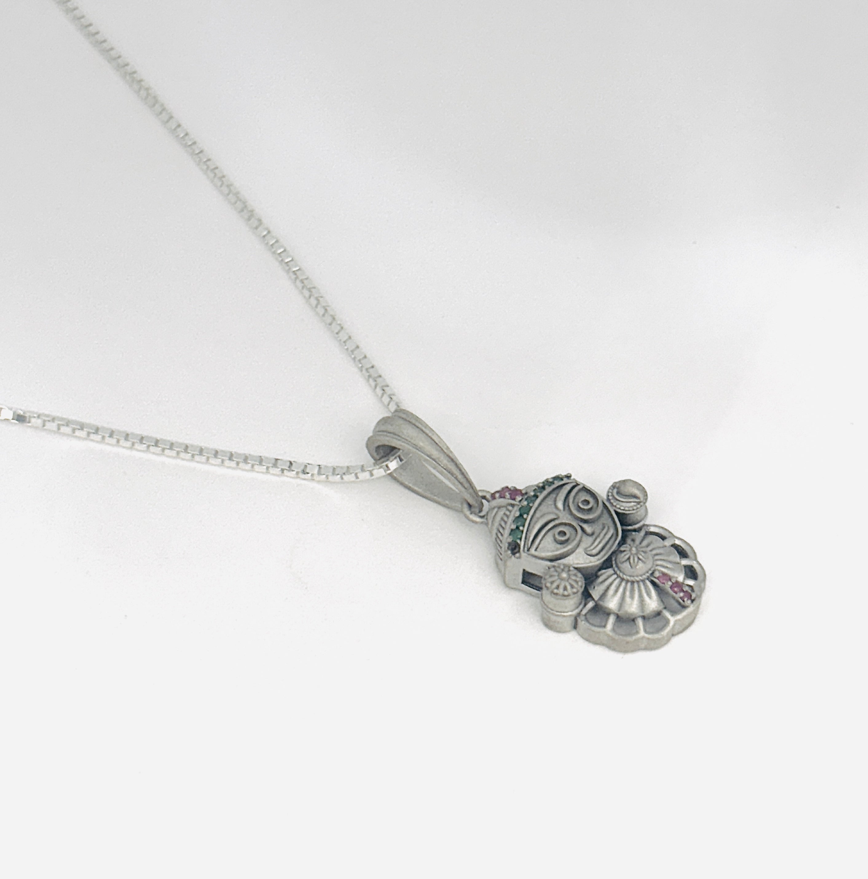 Lord Jagannath Pendant with Silver Chain – 925 Sterling Silver