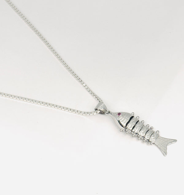 Silver Fishbone Men’s Pendant with Chain – Bold Statement Design