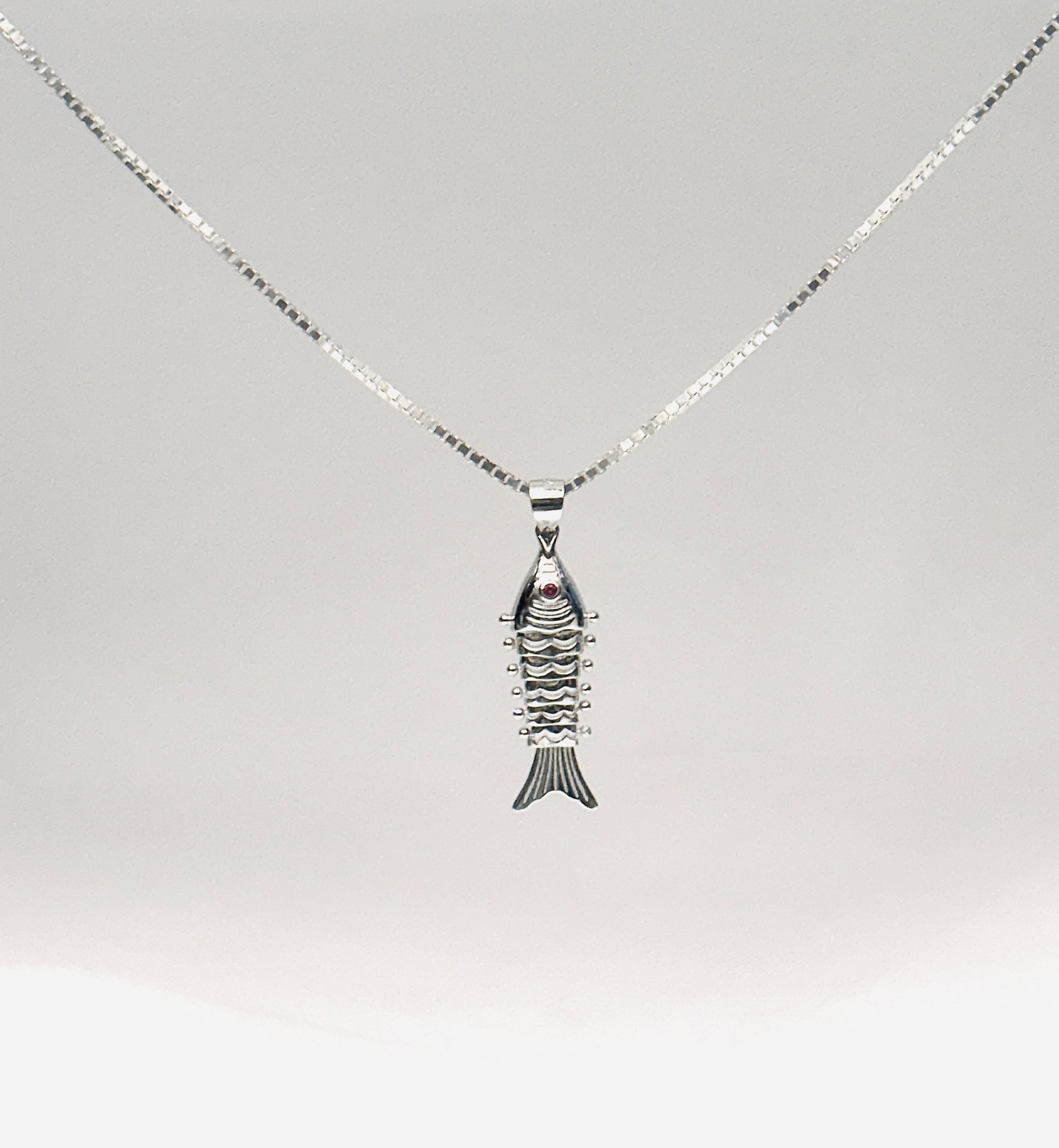 A unique and edgy men’s pendant crafted in 925 sterling silver, shaped like a fishbone with fine detailing and a subtle gemstone accent. The striking design makes it a bold symbol of individuality and modern style, perfect for those who like to stand apart.