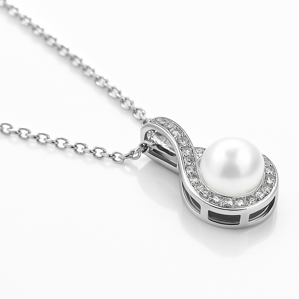 This elegant necklace captures timeless beauty with a luminous pearl at its heart, embraced by a teardrop halo of shimmering cubic zirconia. Crafted in 925 sterling silver, it brings together purity, charm, and sophistication in one delicate design.