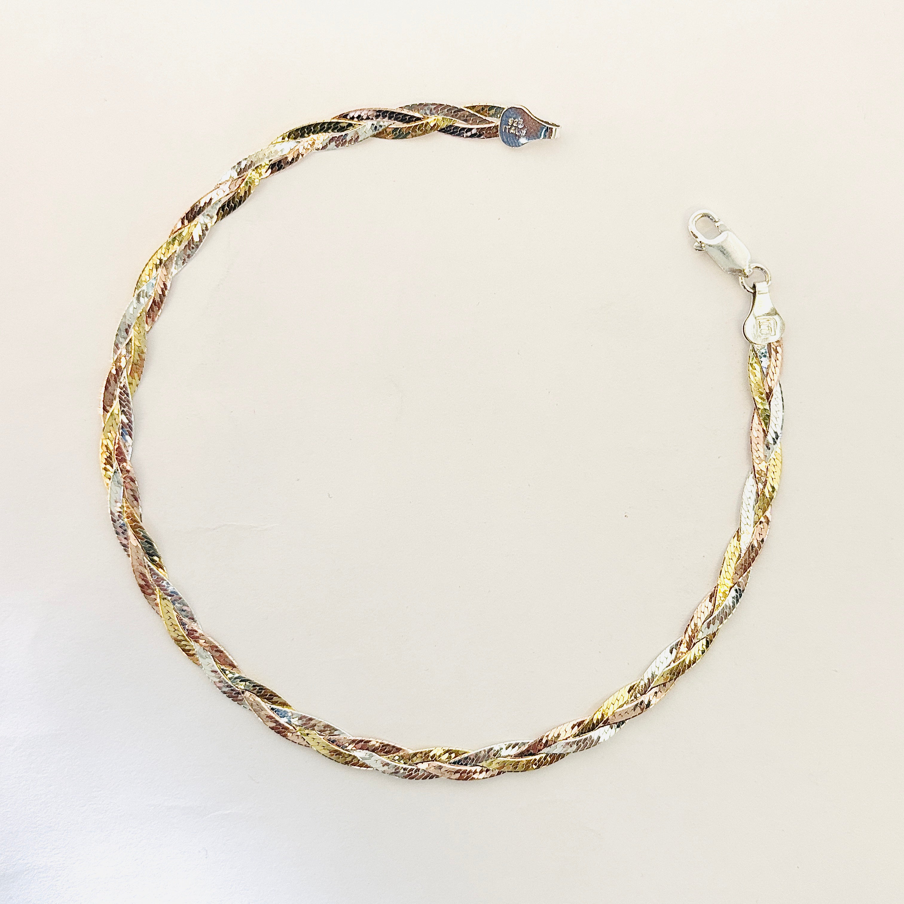 Italian Three-Tone Silver Anklet – Braided Elegance