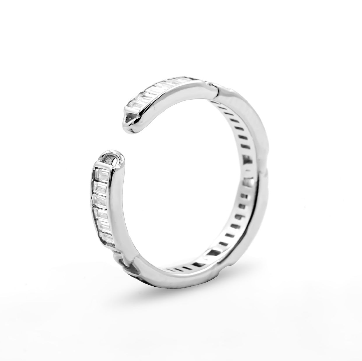 A sleek and versatile unisex silver ring, adorned with meticulously set baguette-cut cubic zirconia stones that exude sophistication. The clean lines and timeless design make it perfect for daily wear or special occasions.