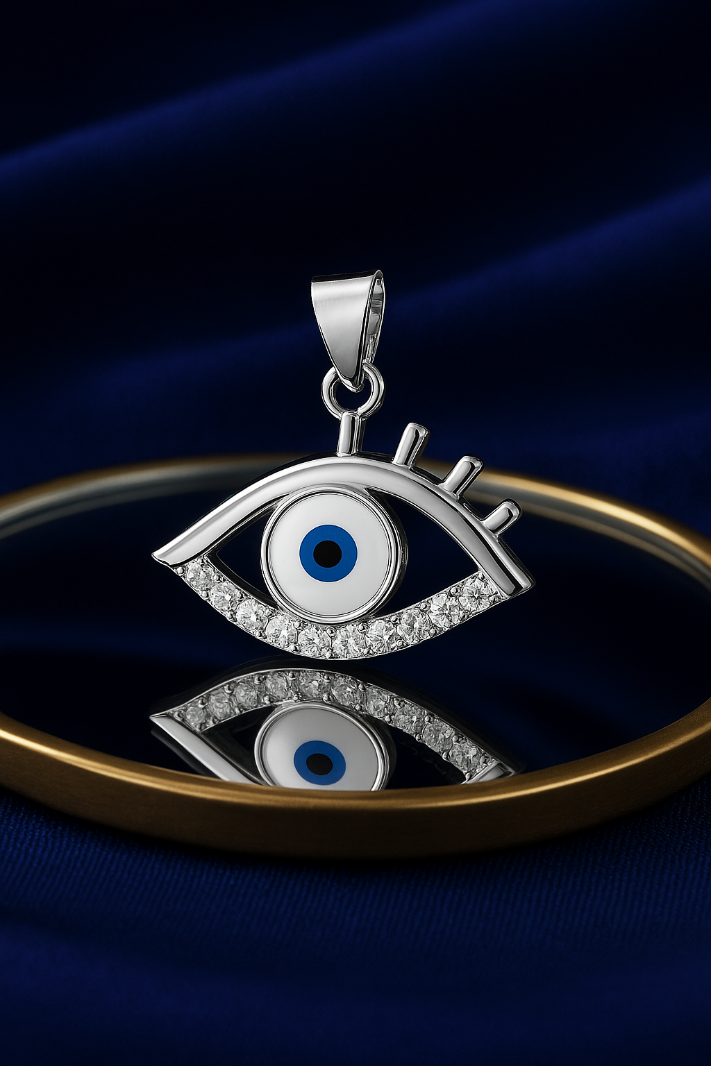 925 Sterling Silver Evil Eye Pendant – Protective Charm with Blue Enamel