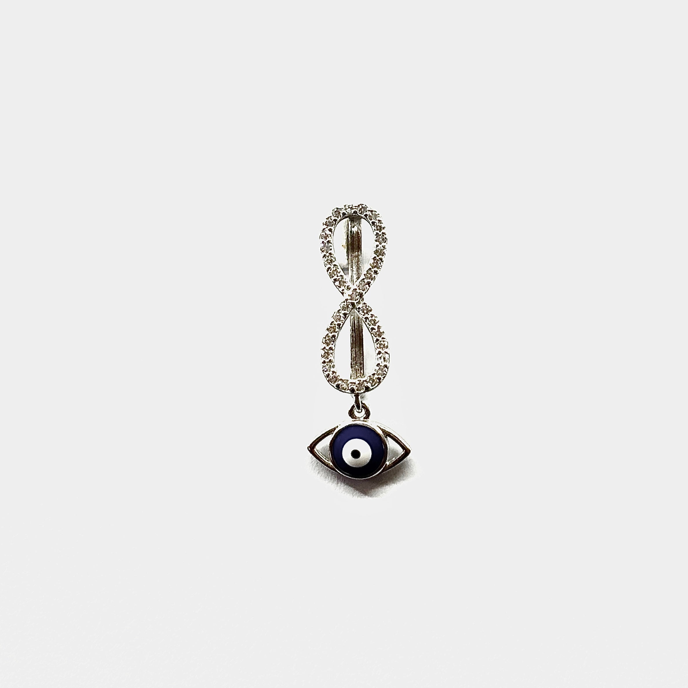 A fusion of elegance and protection, this unique charm features a sparkling infinity symbol adorned with cubic zirconia, gracefully paired with the iconic evil eye. Crafted in sterling silver, it symbolizes eternal strength while warding off negativity, making it both meaningful and stylish.