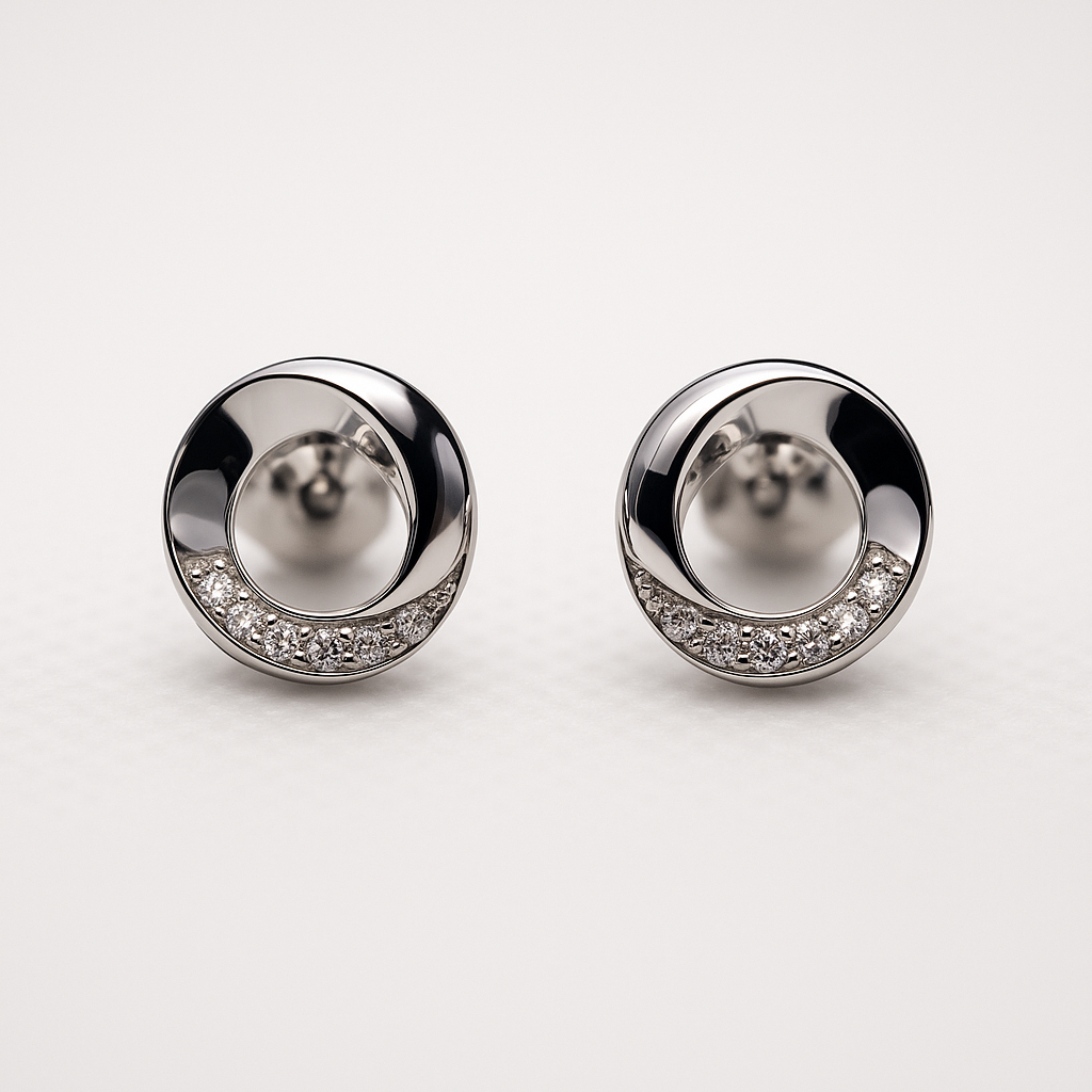 Crafted from pure 925 sterling silver, these chic stud earrings feature a modern twisted circle design, delicately accented with sparkling zirconia for a subtle shimmer. Their compact, lightweight form is hypoallergenic, tarnish-resistant, and versatile, making them perfect for daily wear or as an elegant finishing touch to evening looks.