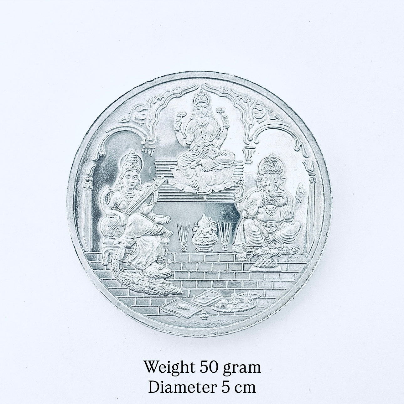 20g -50g-Pure Silver Coin – Lakshmiji Ganeshji Saraswatiji Design
