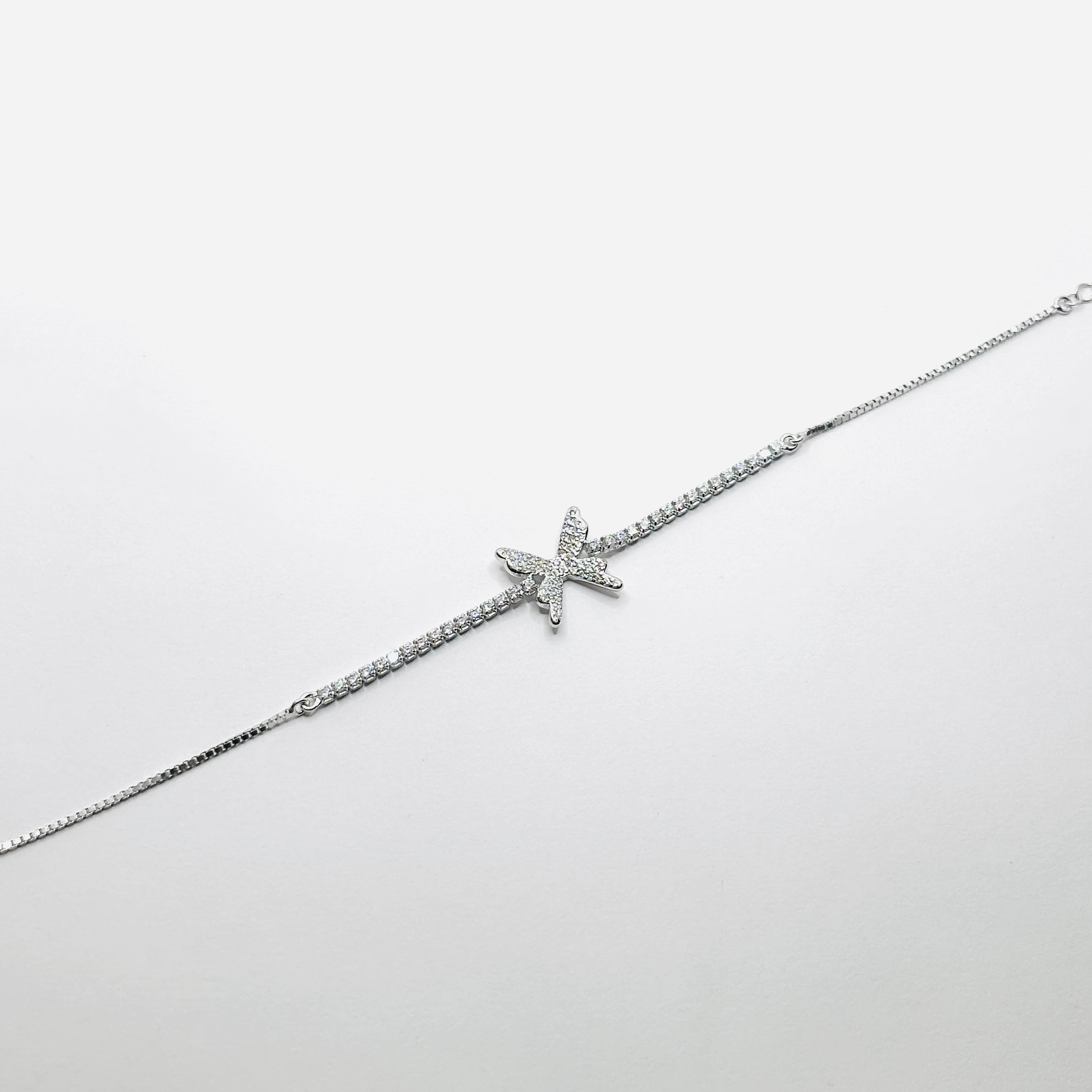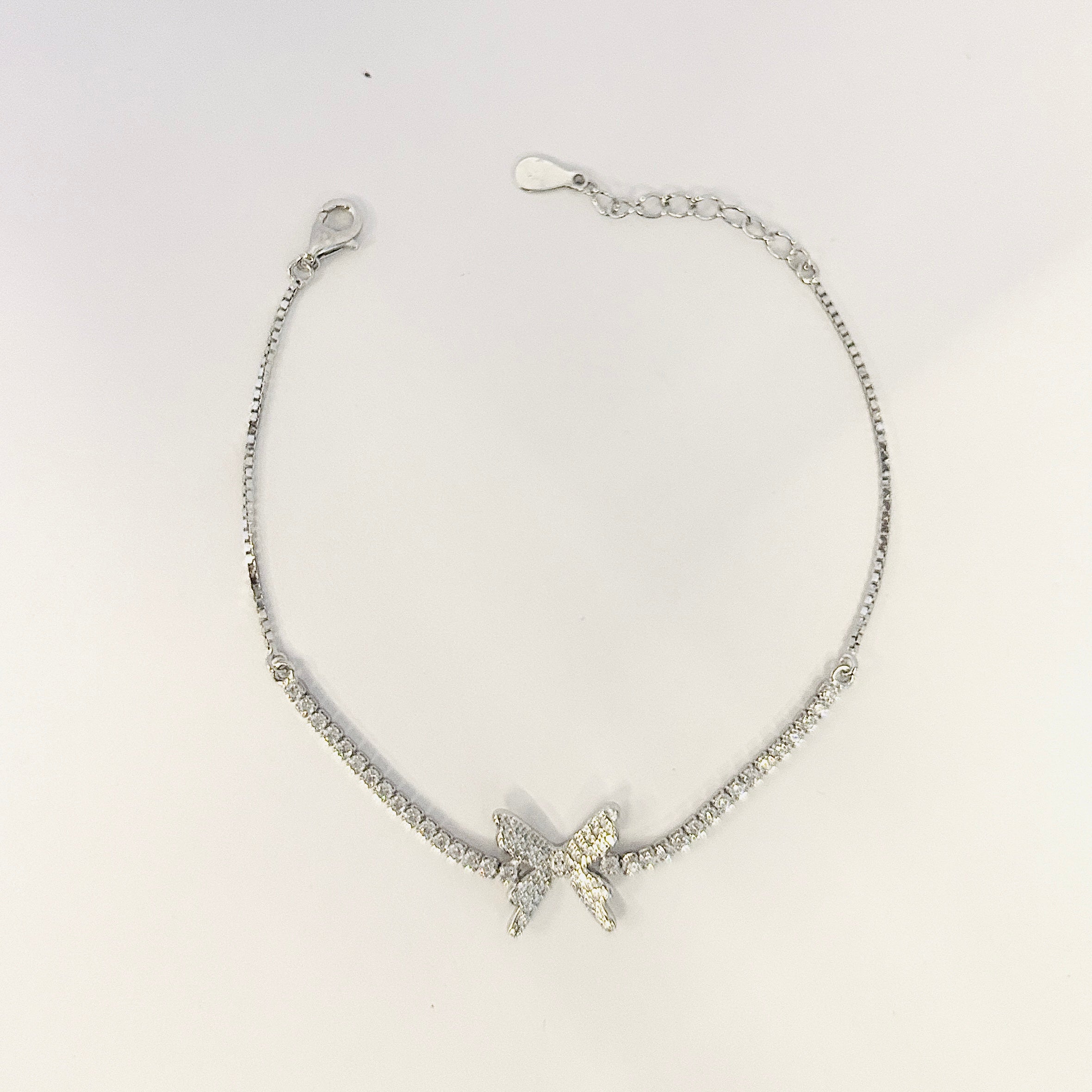 A delicate bracelet featuring a beautifully detailed butterfly at its center, symbolizing elegance and transformation. Accented with a sleek line of shimmering stones, this piece is both timeless and versatile — perfect for adding charm to everyday looks or special evenings.