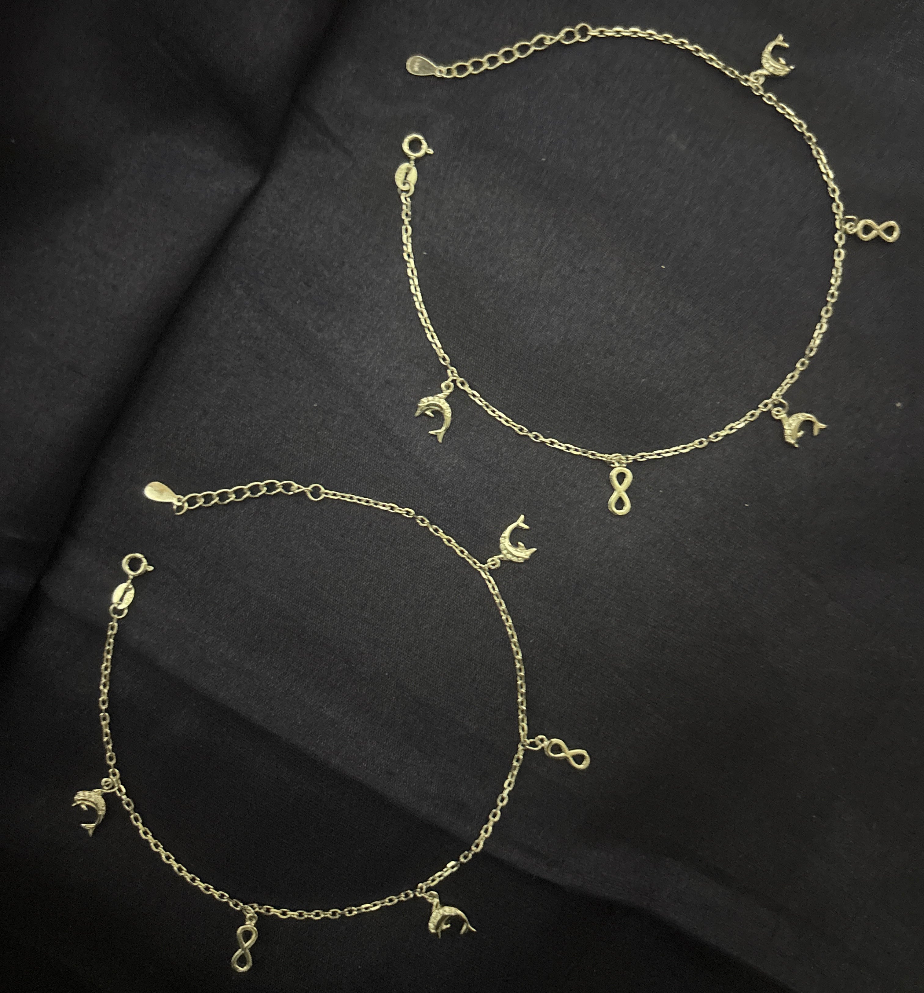 A playful yet elegant anklet featuring alternating dolphin and infinity charms, crafted in pure 925 sterling silver. The design symbolizes freedom, endless joy, and eternal style, making it a perfect everyday wear with a touch of uniqueness.
