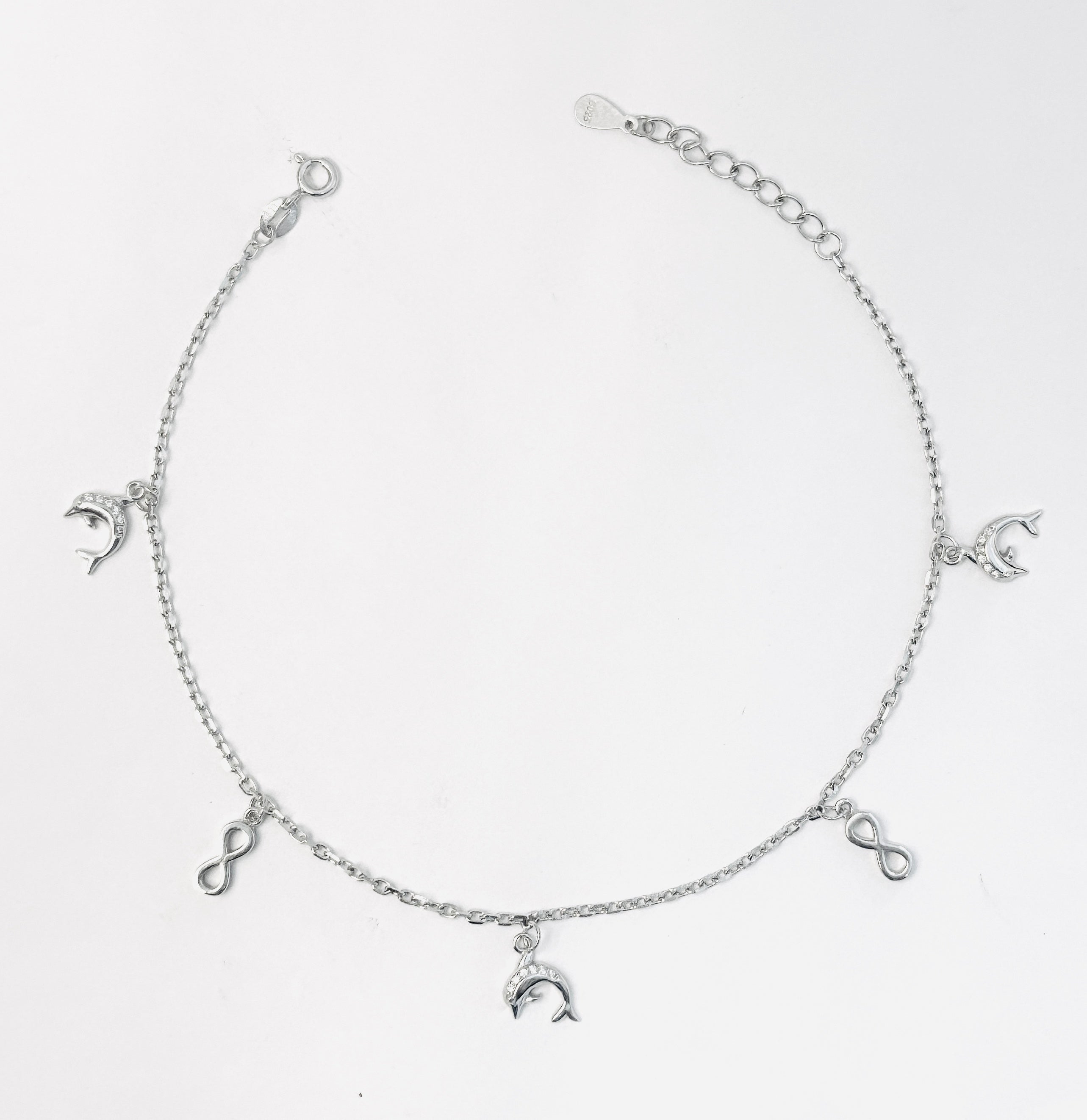 Dolphin & Infinity Charm Anklet in 925 Sterling Silver