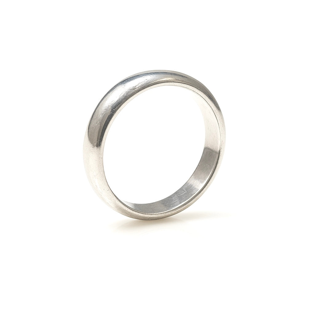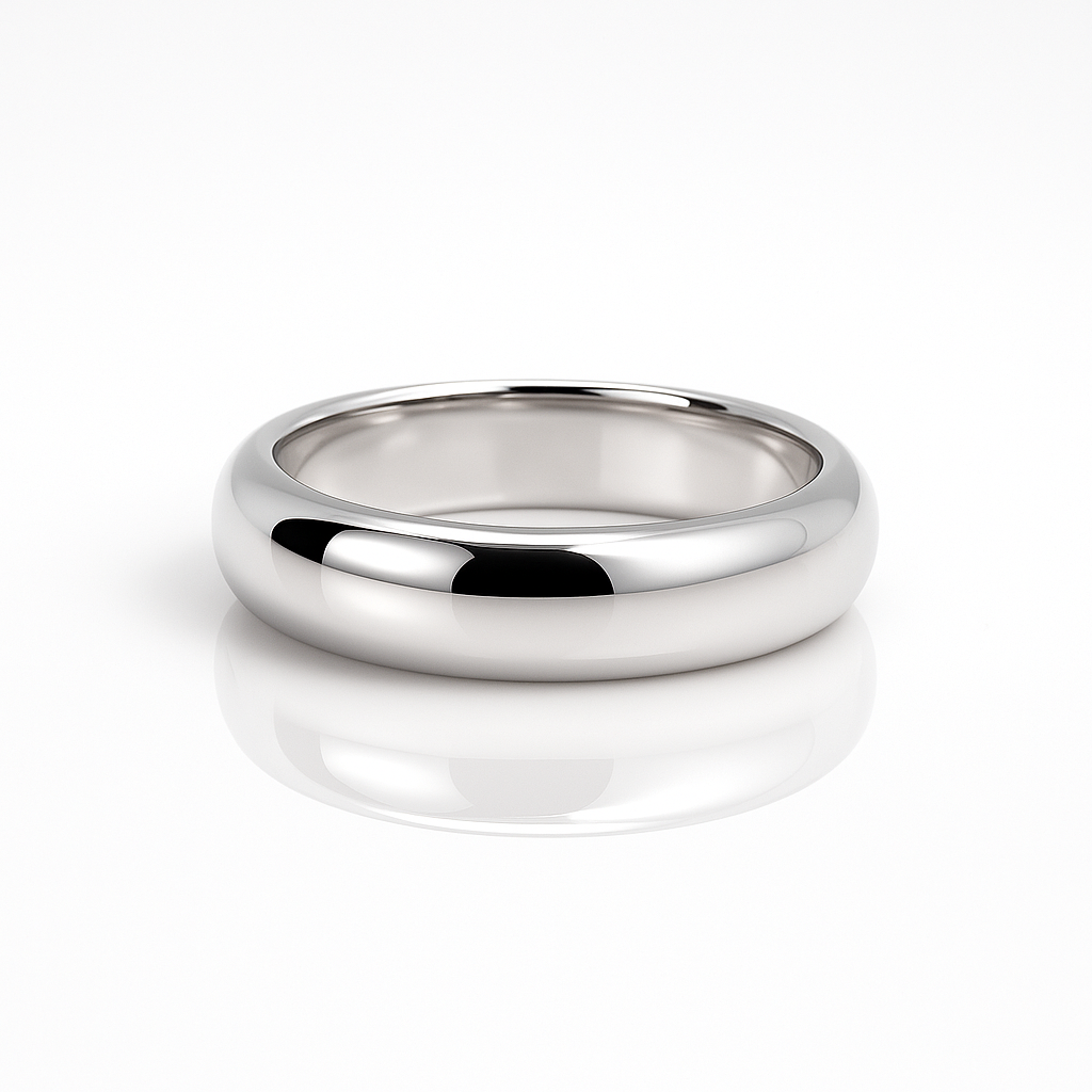A sleek and polished half-round band crafted from premium sterling silver, offering a timeless appeal that pairs with any look. Its smooth, rounded profile ensures comfort while radiating classic elegance.